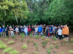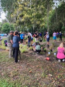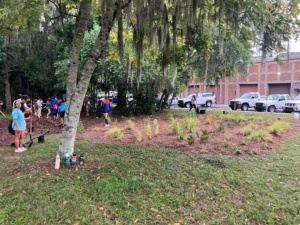 August 27, 2023 THANKS! Great turnout today everyone! Wow what a great way to start out the new semester. Fun was had by all. We accomplished a lot – more invasive species removed and more plants put in the ground; plus lots of watering! Our next effort will be early September- stay tuned.